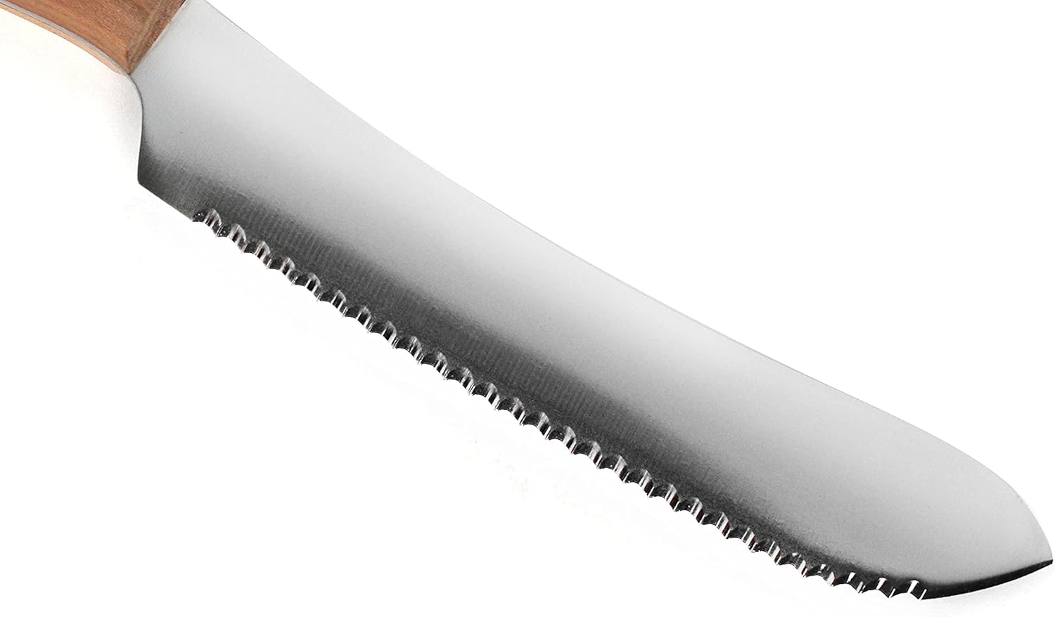 • Sausage knife is serrated for slicing sausage links and crusty baguettes