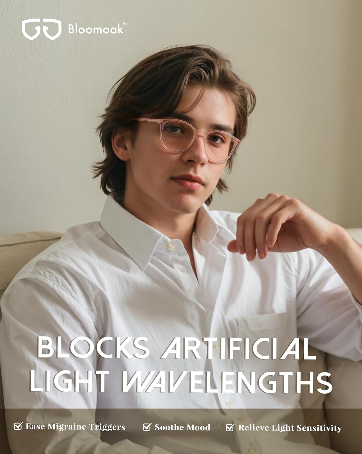 Bloomoak 99.9% Blue Light Blocking Glasses,Gaming Retro Round Glasses,Relieve Eye Fatigue and Improve Sleep,Suitable for Screens/Games/TVs/Mobile Phones