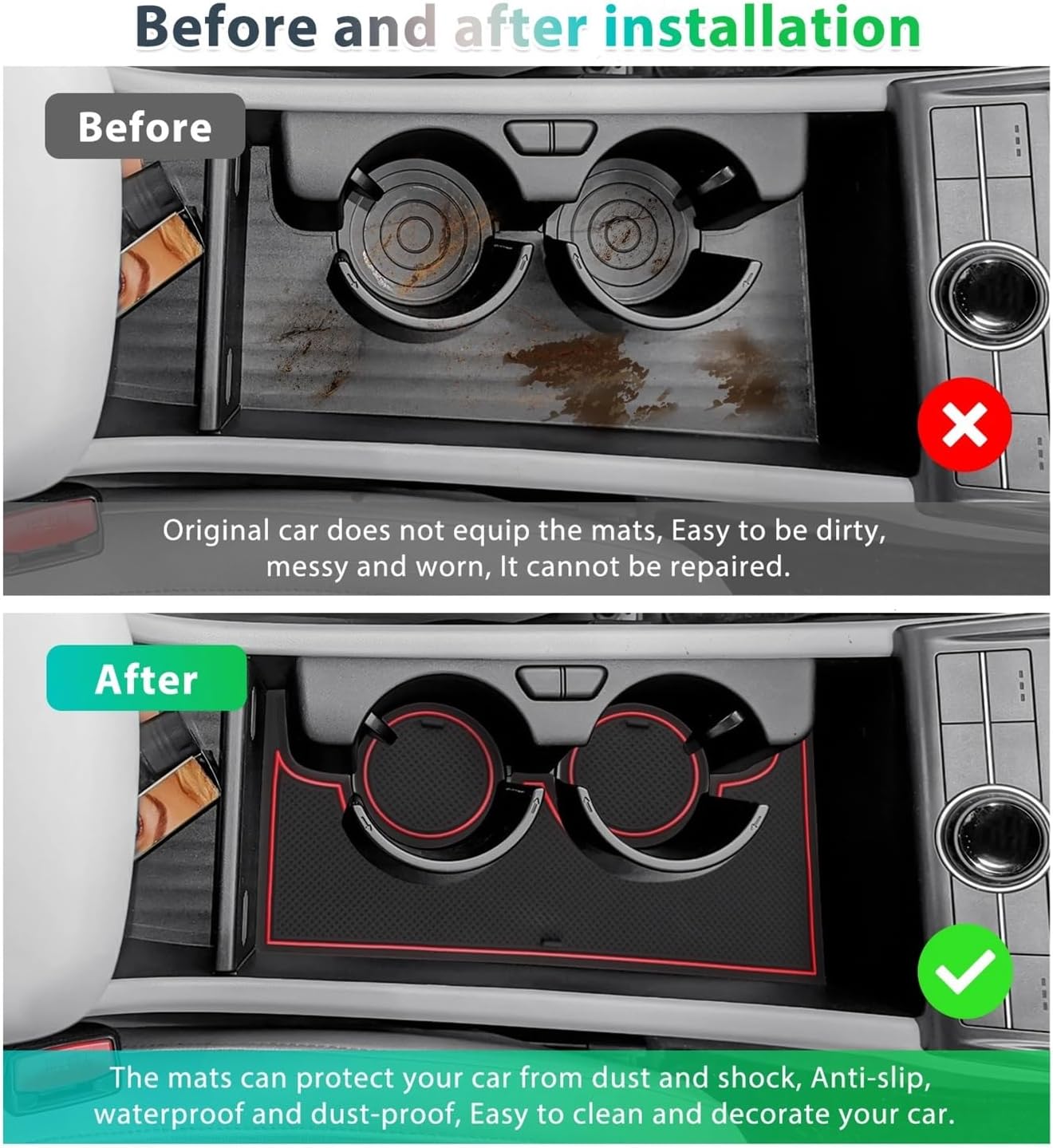 Product Description:1. Dedicated to: 2024 2025 2026 Compatible with Hyundai Kona SX2 Hybird PHEV right hand drive.Note: Only Compatible with Electronic Automatic Transmission Fuel Version, not Compatible with manual gearboxes and automatic gearsticks or Kona SX2 EV electric.2. Material: PVC material, suitable Compatible with installation and easy to clean.3. If you are not sure about the product, please contact us Compatible with verification before purchase. thank you very much!==========: NoneOrigin : Mainland ChinaMaterial : PVCName : Car Door Groove MatSuitable Compatible with : 2024 2025 2026 Compatible with Hyundai Kona SX2 Hybird PHEVNote : Only Compatible with Electronic Automatic Transmission Fuel VersionDedicated to : Kona SX2 Hybird PHEV Right Hand DrivePackage : 15 Pieces / SetColour : Red / BlackWelcome to our store! We offer a wide selection of genuine and compatible high-quality parts for various car brands. From engine components to body accessories, our professional team will provide you with precise matching suggestions, ensuring your car repair is worry-free.