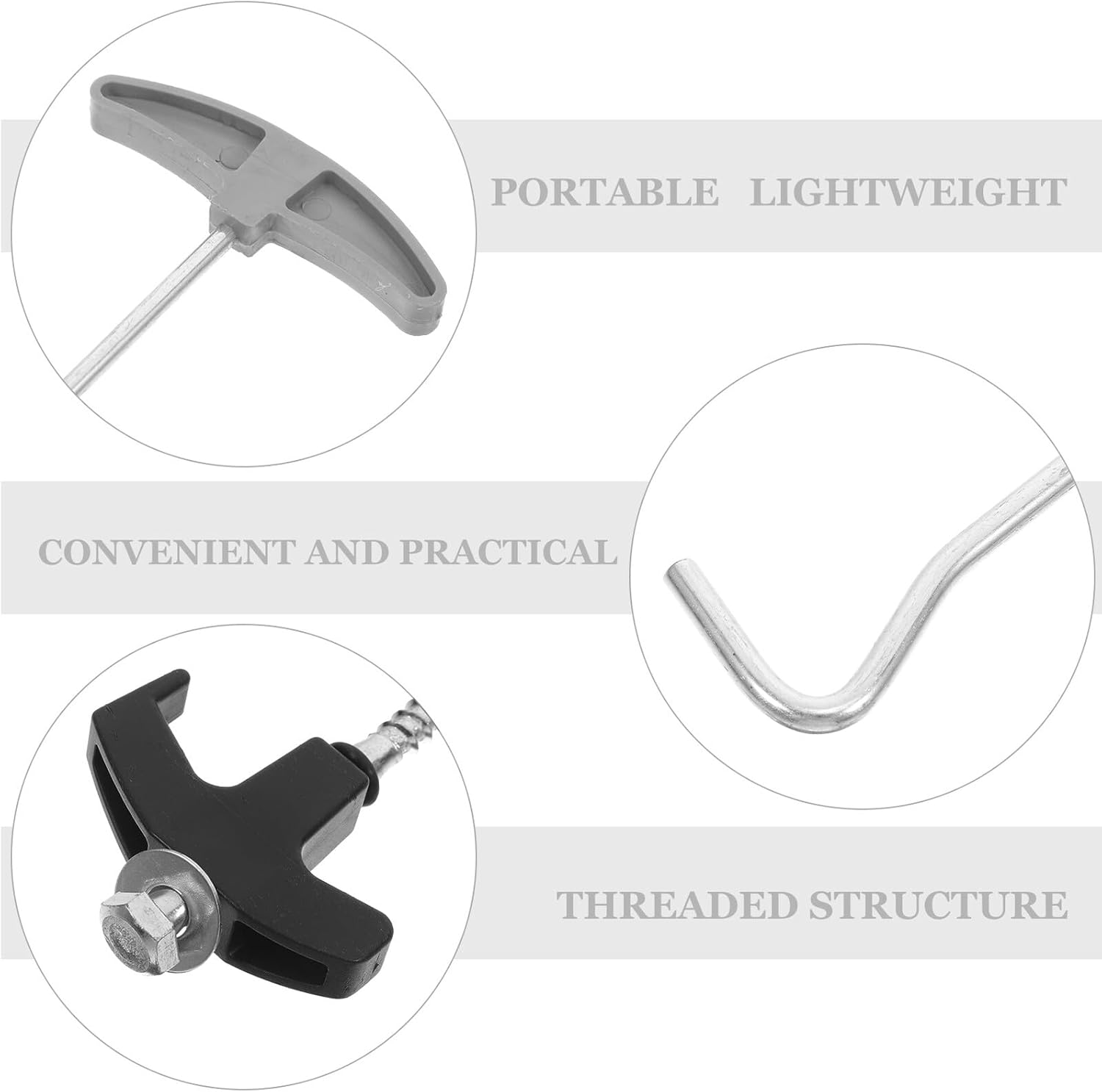 Package List 10 x ground stakes 1 x sleeve 1 x plastic box 1 x nail picker Features -Material:Carbon steel -Product Info: Tent peg kit - head: the durable cap protects your tent fabric from wear and tear, ensuring your gear stays in top condition stakes for outdoor decorations -Reliable build quality: made with carbon steel, these ground anchors are designed to provide performance and reliable support for your outdoor needs outdoor tent pegs -Color:Assorted Color -Hexagonal rotation feature: the design simplifies the process of screwing the stakes into the ground, making setup faster and more efficient tent camping accessories -Size(sleeve):6.50X1.50X1.50cm/2.55X0.59X0.59in -Note: M8 screw lawn stakes -Size(ground stake):20.00X6.00X1.50cm/7.86X2.36X0.59in -Secure ground hold: the spiral thread design offers stability, keeping your tent or tarp firmly anchored even in challenging conditions stakes for tarp -Size(nail remover):17.00X9.00X1.00cm/6.68X3.54X0.39in -Compact and easy to carry: lightweight and portable, these stakes are an essential addition to your camping gear, fitting conveniently into your travel bag replacement tent pegsGoods Informationtent ground nail The combination of a carbon steel body and a user-friendly head ensures durability and ease of use.tent peg nails Ideal for camping trips, beach days, or backyard setups, they deliver dependable support.beach stakes These camping accessories are designed to meet the needs of outdoor enthusiasts, providing a secure and stable foundation for tents and other gear