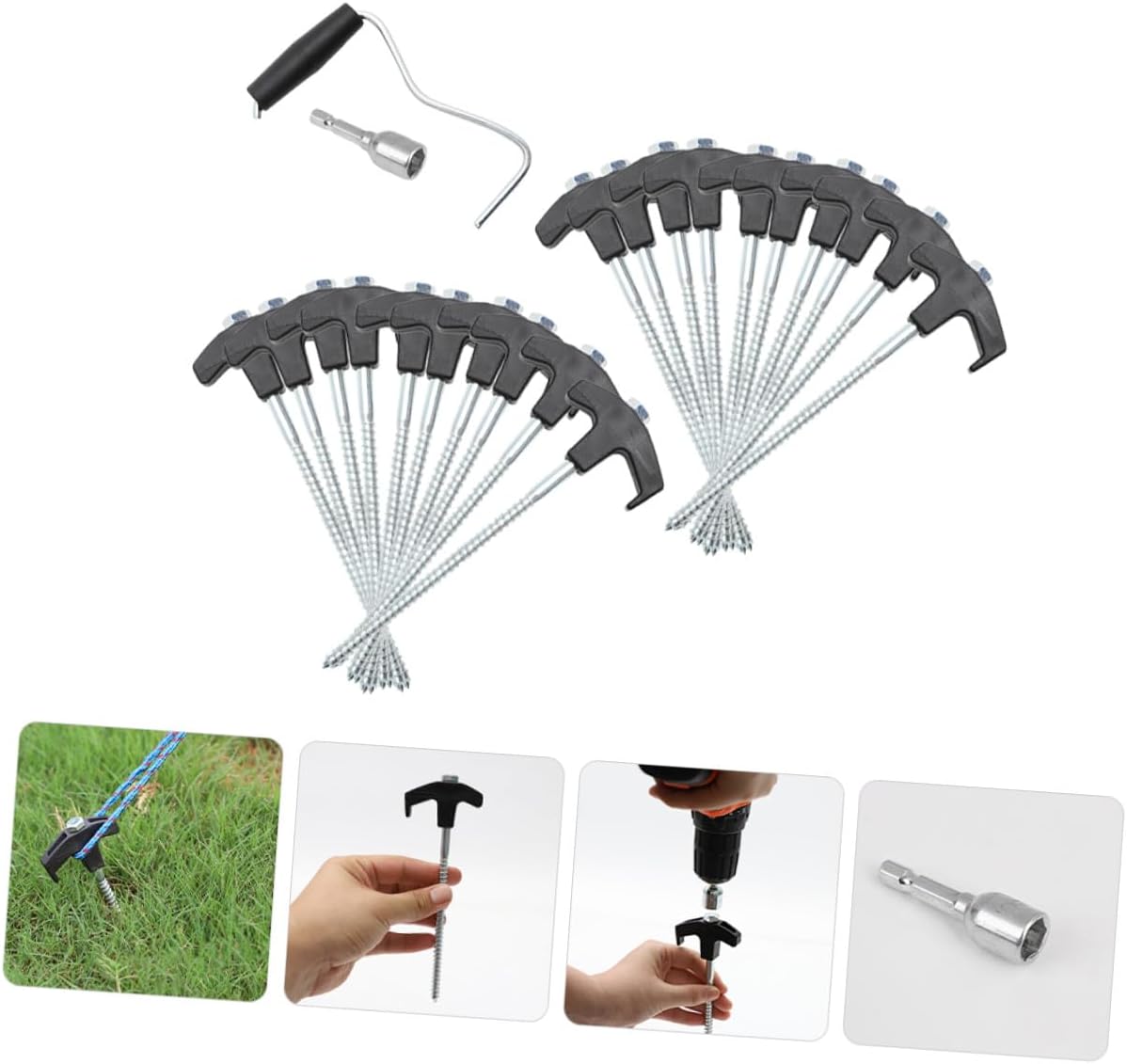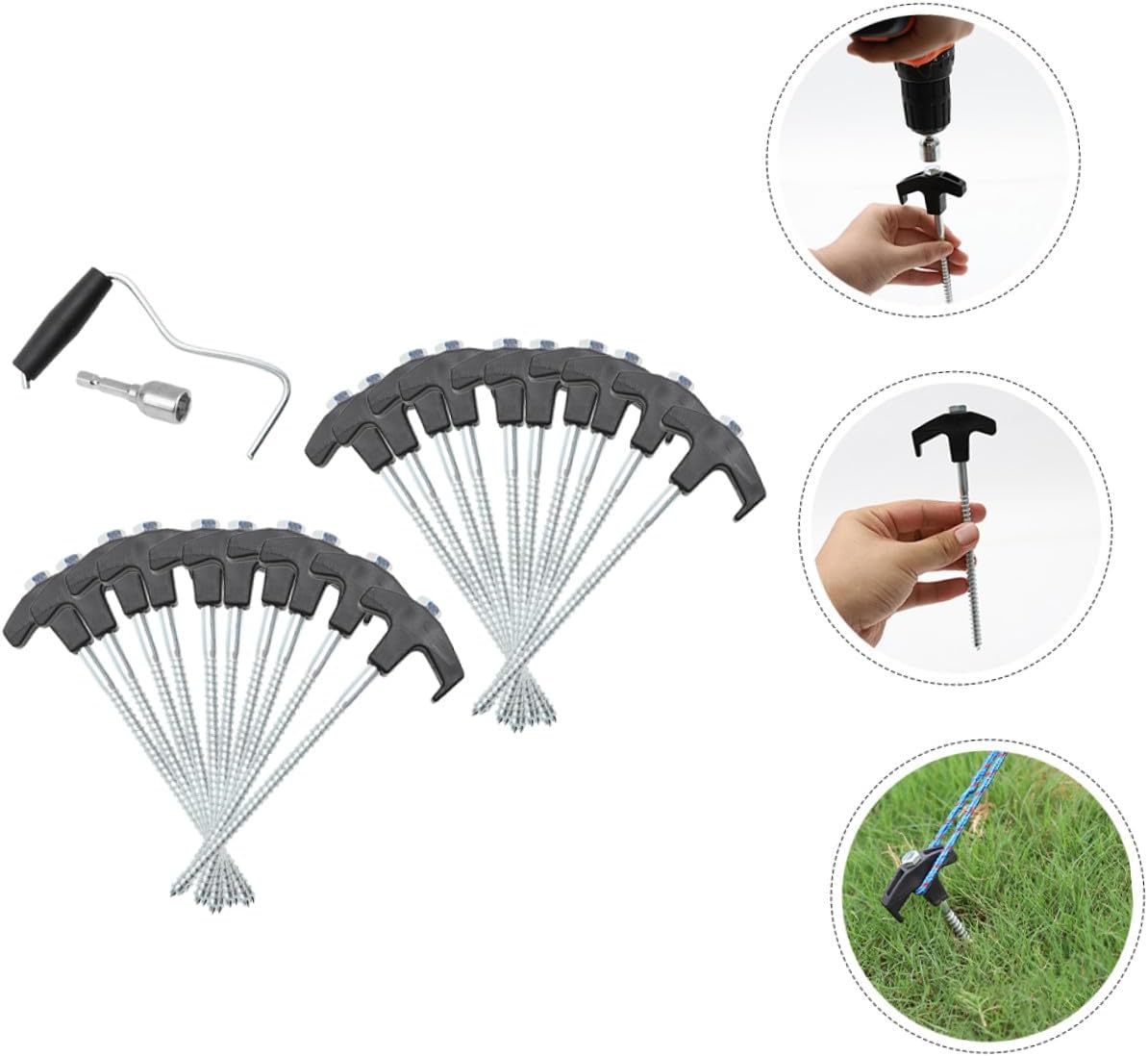 Package Include 20 x Outdoor Tent Stakes 1 x Nut 1 x Stake Lifter Features -Material:Plastic,steel -Size:18.50X6.50X0.80cm/7.27X2.55X0.31in -Color:Black -Product Info:Floor nail set - The tent stake is a good helper for securing and fixing a camping tent, awning, canopy, etc steel tent stakes. - This tent stake can fix your tent, not easy to be blown by the wind tent stake heavy duty. - The tent stake has a simple design, but very practical in use, giving you a outdoor tent pegs. - Made of sturdy and good practical material, the tent stake is durable and practical for use. - The tip makes it easy to drive the stake into the ground, and this tent ground stake is easy to pull out. Good for anchoring tents, , tarps, flowers, trees, vegetables, gazebos tent stakes.Goods Informationreplacement tent pegs Are you still susceptible to tripping over the tent nail when camping at night? Then, you miss our ground nail, using sturdy material, safe and durable, which is not easy to bend and deform.canopy stakes Suitable for outdoor, camping, garden, beach, etc
