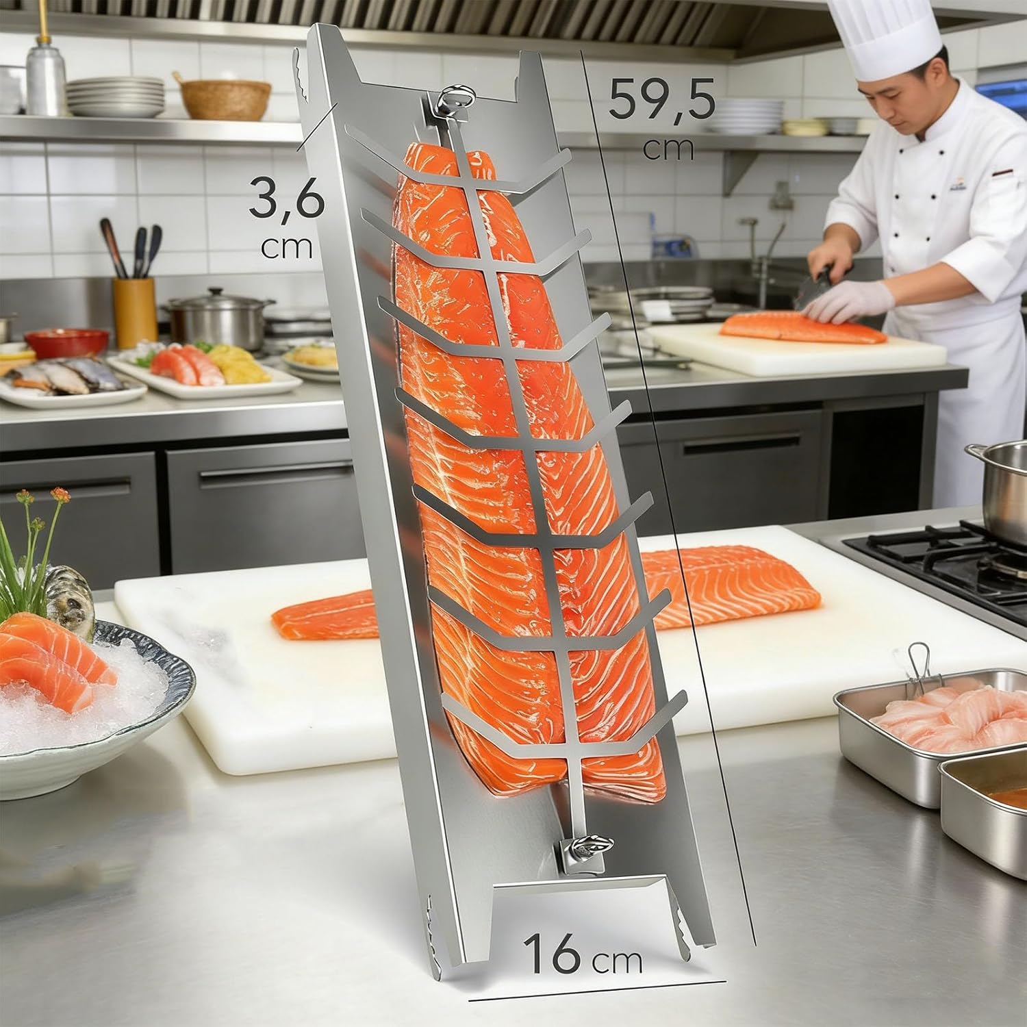 Heavy Duty Stainless Steel Cooking Plate For Camping Pit And Backyard Barbecue Features: Premium 304 Stainless Steel Build: Made with reinforced 304 stainless steel for superior heat resistance and stability Unlike traditional wooden boards, it withstands direct heat without damage, offering a permanent and hygienic cooking alternative for outdoor cooking needs Easy Maintenance & Dishwasher Safe: The smooth stainless steel face resists grease absorption and eliminates odors, overcoming common wood board issues quickly with soap and water or use dishwasher for care after outdoor meals Adjustable Base for Balanced Cooking: Features a tilt adjustable stand to optimize heat distribution This minimizes flipping requirements, preserving the texture of delicate seafood like salmon or other meats during preparation Versatile Outdoor Cooking Accessory: Ideal for preparing salmon, whole fish, steaks, or vegetables The sturdy clamp fits most circular cavities, charcoal burners, and standard barbecue setups, perfect for camping trips or backyard cookouts Premade Design: Eliminates pre soaking required by wooden boards This portable ( 1000g) cooking plate sets up instantly for spontaneous outdoor adventures and stores compactly when not in use Specifications: Substance: Food grade 304 stainless steel Weight: 1000g Applicable scenarios: Outdoor camping, courtyard barbecue, firepit party Applicable ingredients: salmon, whole fish, meat, Package Includes: A salmon barbecue plate Note: Pay attention to the storage methods