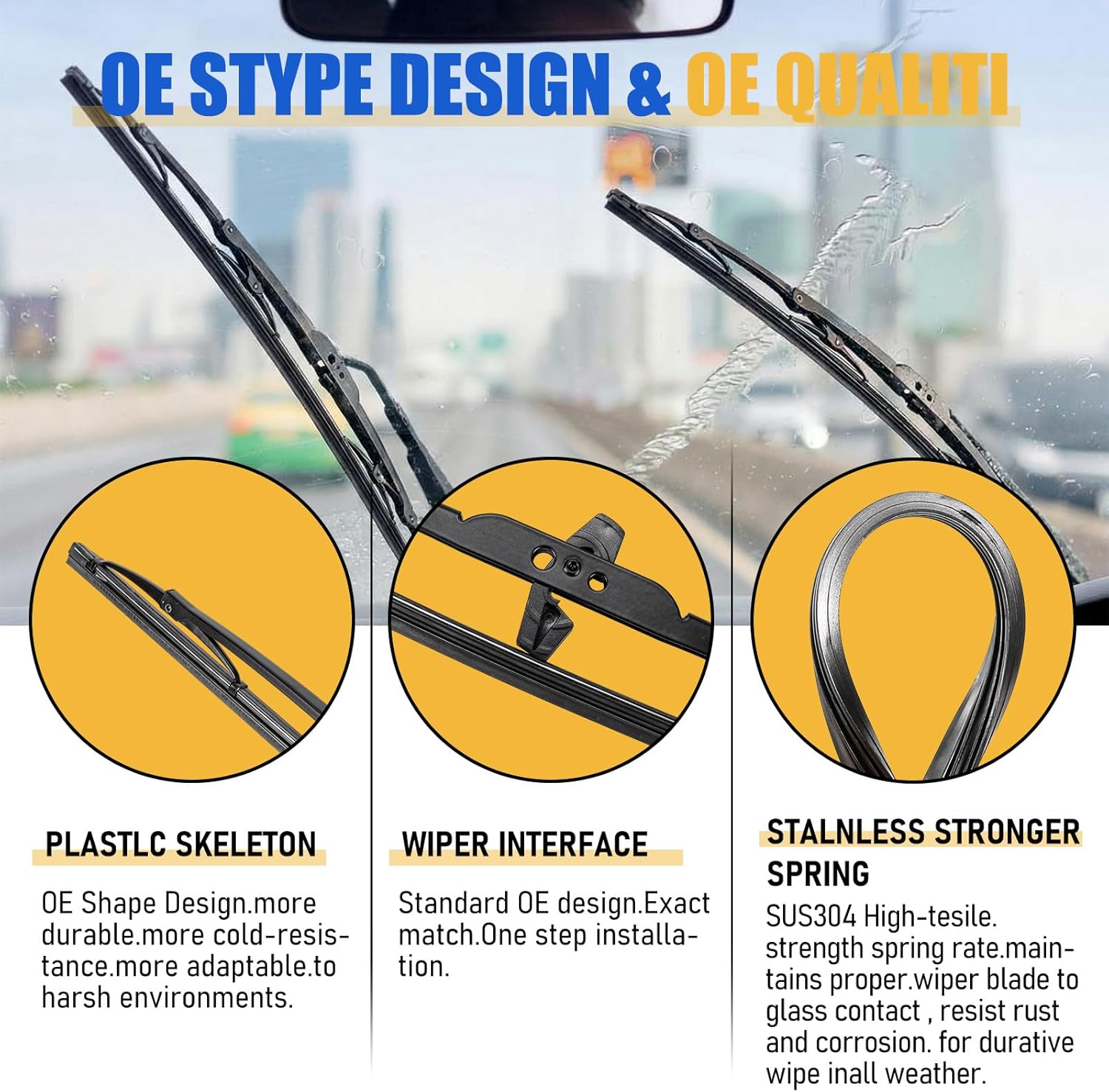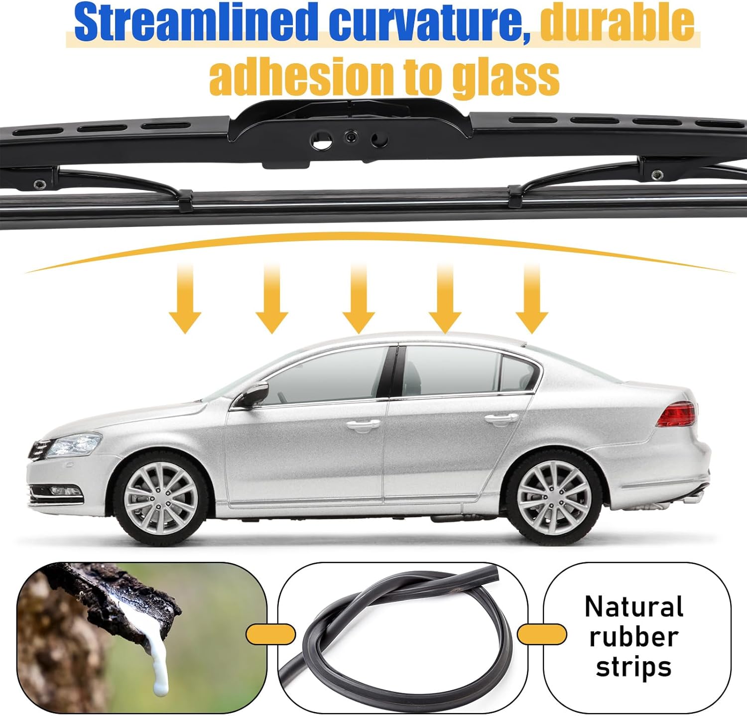 Features: Easy to use: Our automotive windshield wipers is about 22 inches, featured a stylish design, and are easy to use, allowing for quick and easy replacement, removal, and cleaning, making them convenient for everyday use. Durable and stable: These wipers blades for car are constructed with a metal frame, ensuring the blades remain intact in adverse weather conditions and provide stable performance at high speeds. The durable metal and rubber adhere to your windshield for effective wiping. Specifications: Material: metal and silicone Color: black Size: about 20 Inches (L) Package includes: 16 x Windshield wipers Warm notes: Manual measurement, please allow a slight error in size. Due to different screen displays, there may be slight differences in color