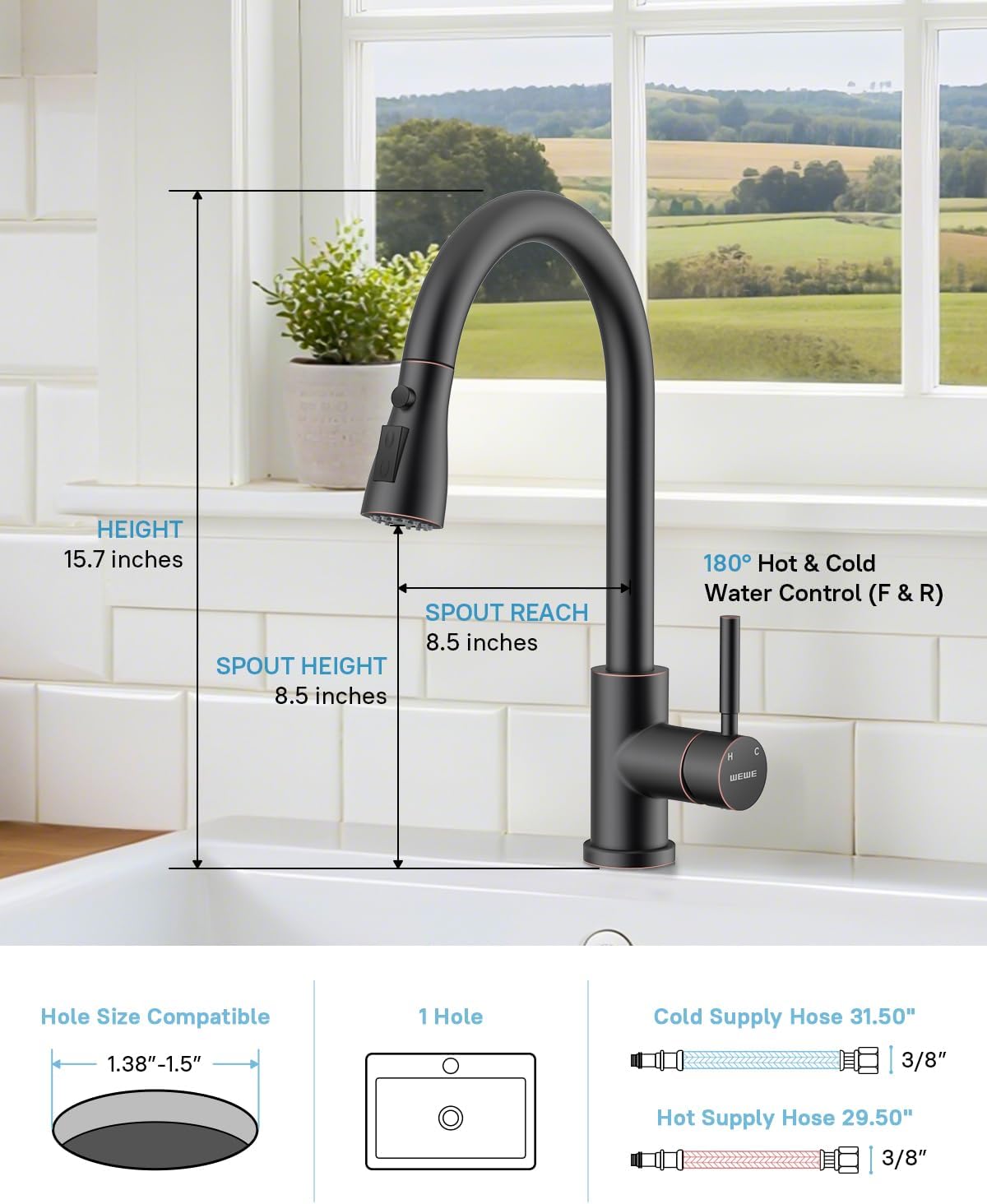 WEWE Kitchen Faucets with Pull Down Sprayer, Stainless Steel Single Handle 1 Hole for Family Kitchen with Kitchen Sink Soap Dispenser