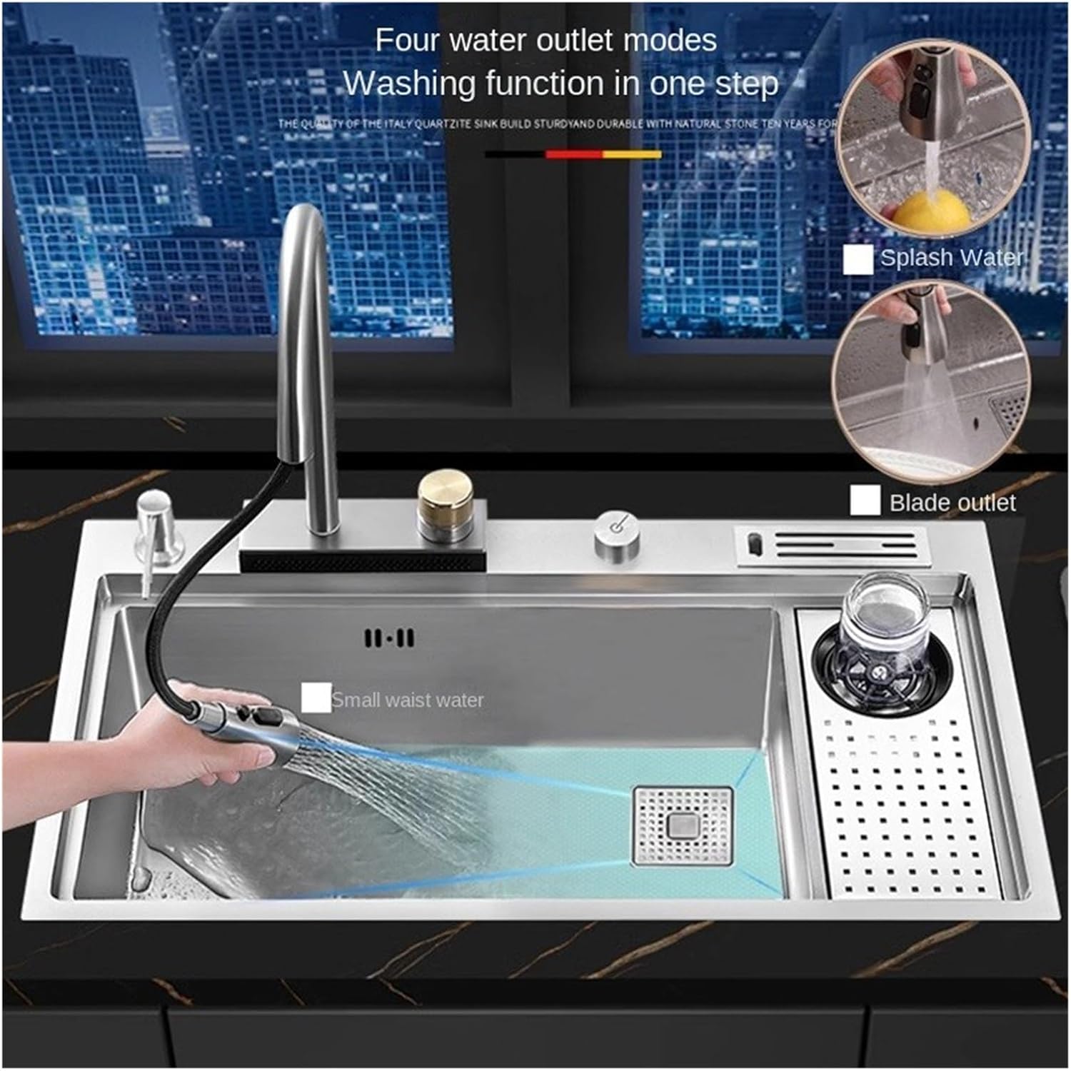 Kitchen SinksModel: Cup washer single slotMaterial: stainless steelSupporting accessories: with other accessories, drain basket, soap dispenser, and faucetNumber of slots: 1Size: 750x450x220mm