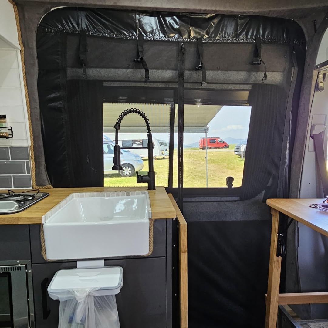 This RV insect screen door is a must-have for summer camping. Keeping bugs out while still enjoying the fresh air, this screen mounts easily to your Mercedes Sprinter's sliding door frame. Made of durable mesh fabric, it blocks mosquitoes, flies, and other insects from entering your living space. The full-length screen zips open from either side for easy access in and out. It's also removable for storage when not in use, it provides ample coverage without blocking views. Lightweight yet sturdy, its aluminum frame won't sag over time. Protect yourself from pesky bugs and enjoy the outdoors worry-free with this handy sliding door screen.