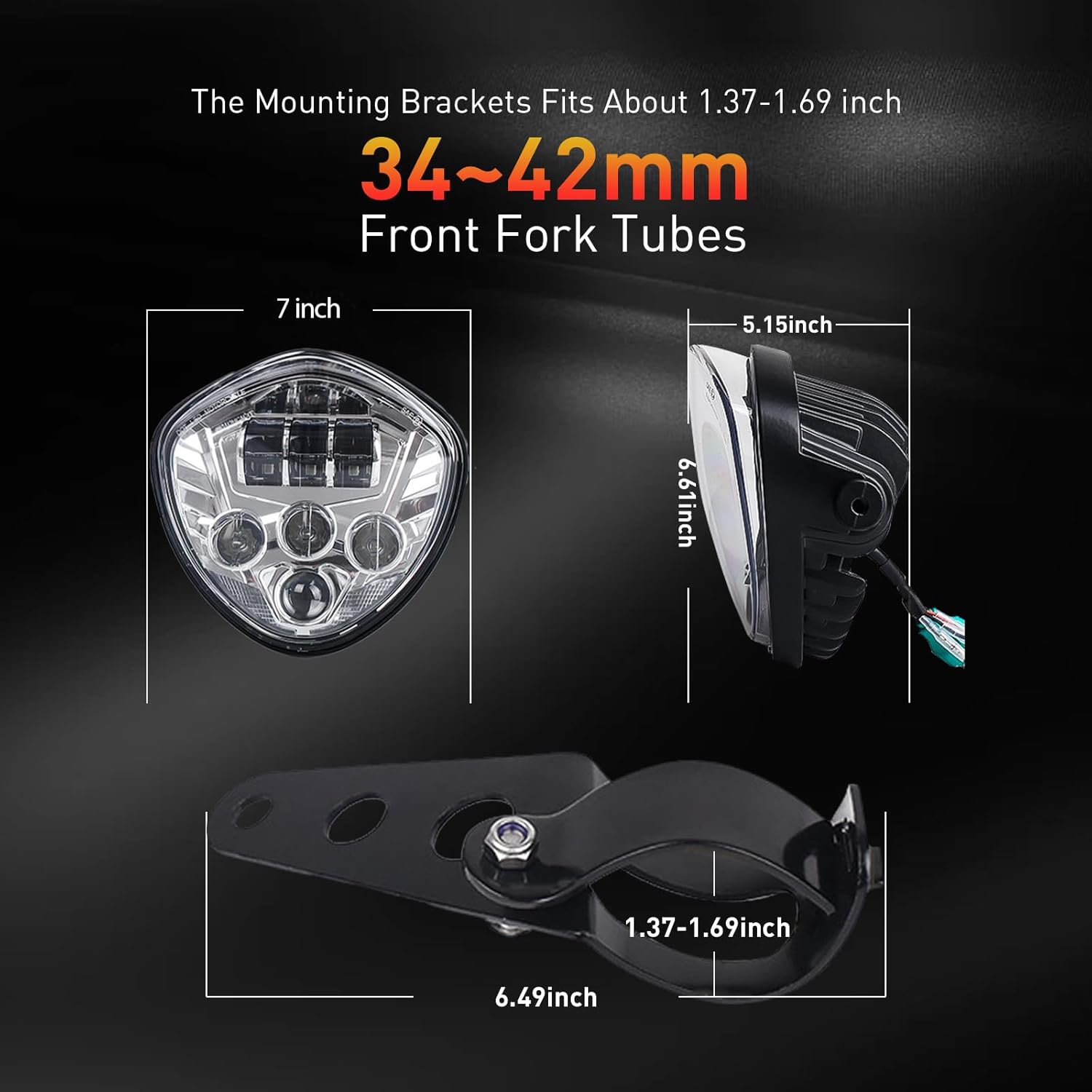 | Compatible with Vehicle Type | Compatible with FXWG, FXDWG, and FXST models with 7" LED Headlight. Compatible with Fits 2004-2014 Sportster XL883 XL1200, Other Motorcycle Models: Compatible with Honda CB400/CB1300/CB250/CB1100/CB450/CB919 Hornet, Compatible with 2007 Kawasaki Ninja EX500D, Suzuki, 1999 Moto Guzzi EV110, Streetfighter, Yamaha, Chopper, Triumph, Cafe Racer, etc., Universal Application, Fits any motorcycle with 1.38inch - 1.69inch fork tubes. |