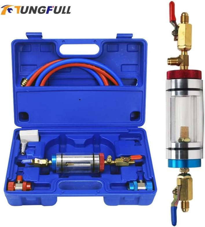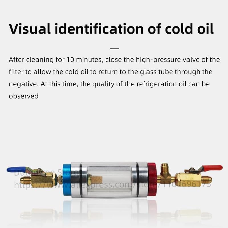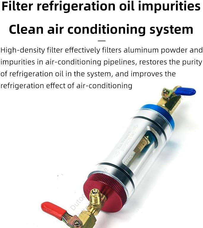 Oil change operation method1,Connect the filter and blue and red hoses and quick connectors.2,Connect the high and low pressure quick connectors to the high and low pressure ine filling ports on the vehicle respectively.3,Close the blue low pressure quick connector and open the red high pressure quick connector. At this time, the refrigerant oil in the low pressure direction will go to the high pressure direction and enter the container.4,When the refrigerant oil enters the glass bottle and reaches a certain capacity, close the high pressure valve. At this time, you can take out the refrigerant oil and add new refrigerant oil.5,Open the high and low pressure valve switches to allow the new refrigerant oil to enter the pipeline for circulation.How to filter impurities1. Connect the filter to the blue and red hoses and quick connectors.2. Connect the high and low pressure quick connectors to the high and low pressure ine inlets on the car respectively.3. Open the high and low pressure valves (the high pressure valve cannot be fully opened, the ball valve is opened to about 1/4, and the low pressure valve is fully opened).4. Use high pressure to low pressure circulation to filter impurities.5. Start the car and turn on the air conditioner to start filtering and cleaning impurities.