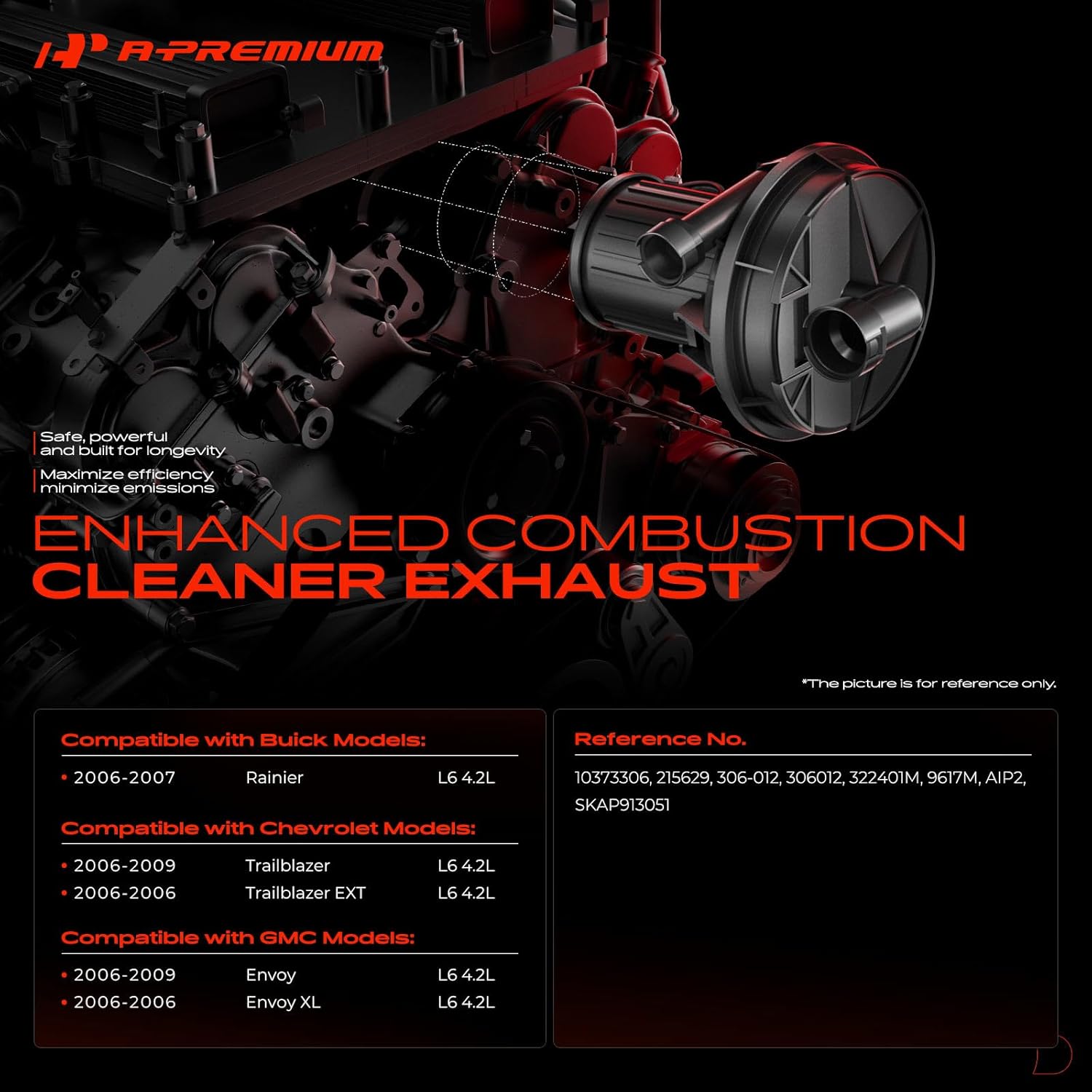 A-Premium Secondary Air Injection Smog Pump Compatible with Chevrolet Trailblazer 2006-2009, Trailblazer EXT 2006 & GMC Envoy 2006-2009, Envoy XL 2006 & Buick Rainier 2006-2007, 4.2L