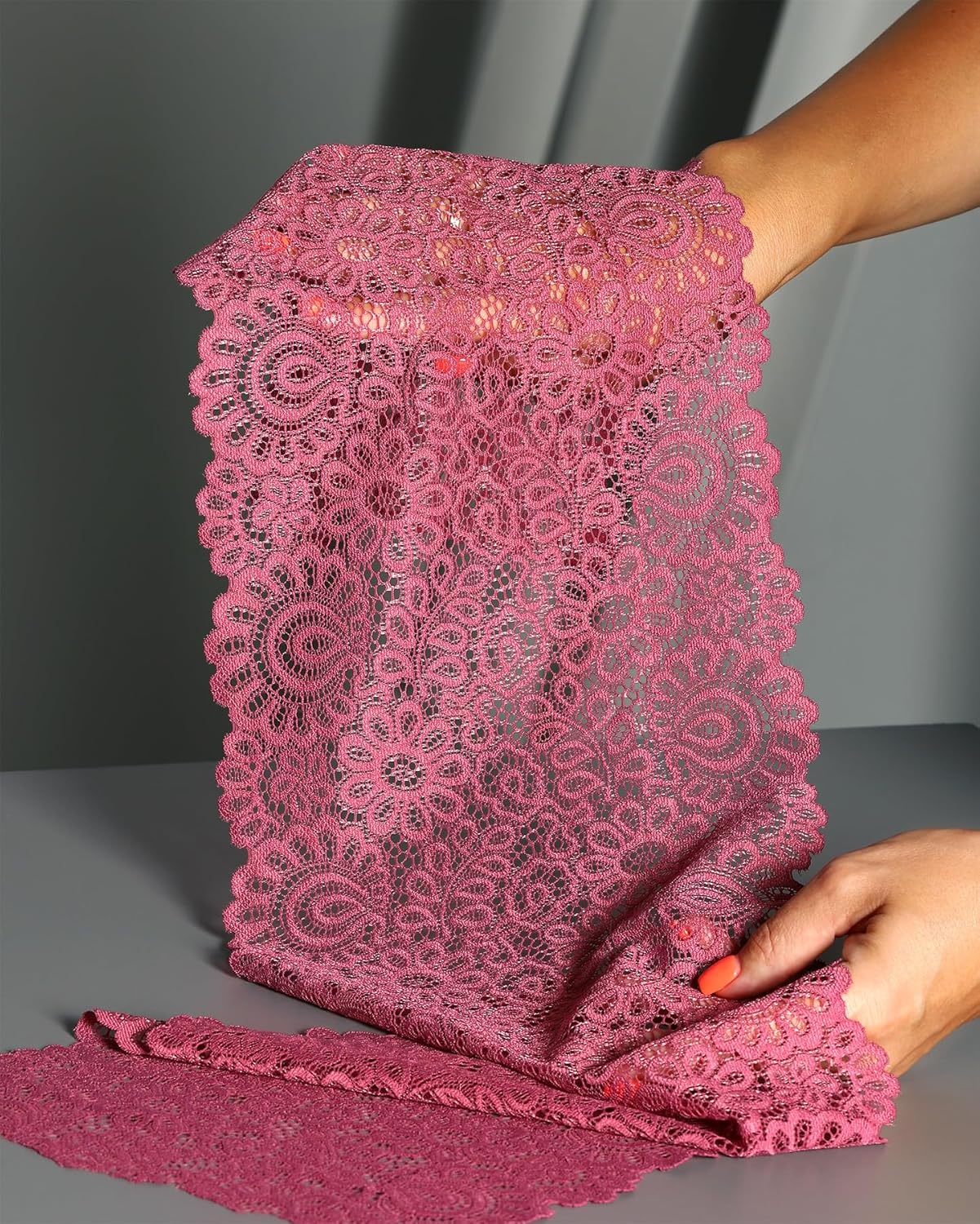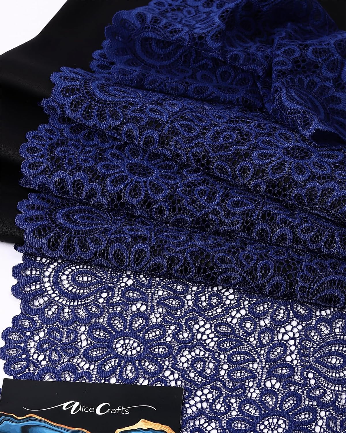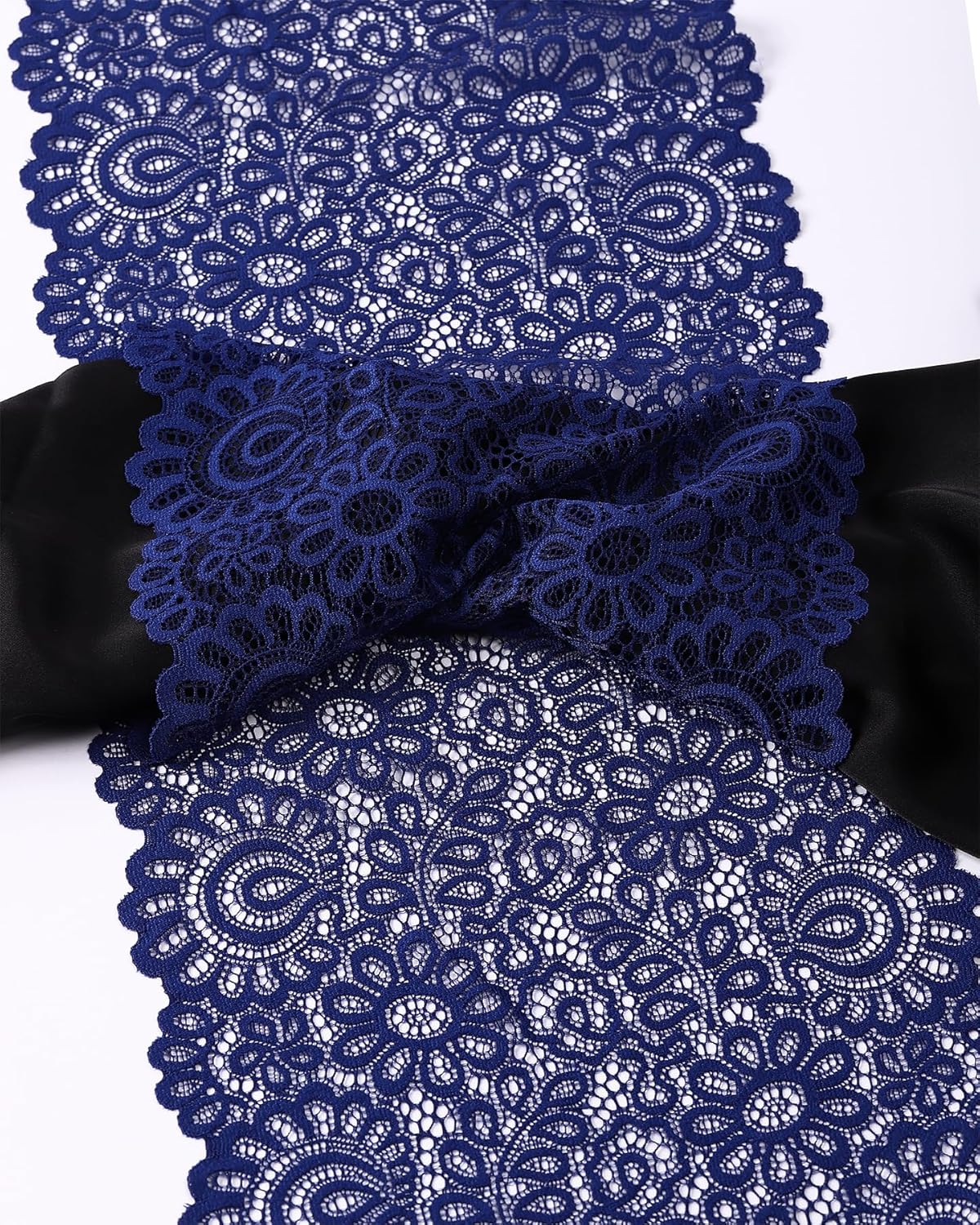 • Package comes with 1 roll of Navy Blue stretch lace ribbon, 5 yards long and 8 inches wide