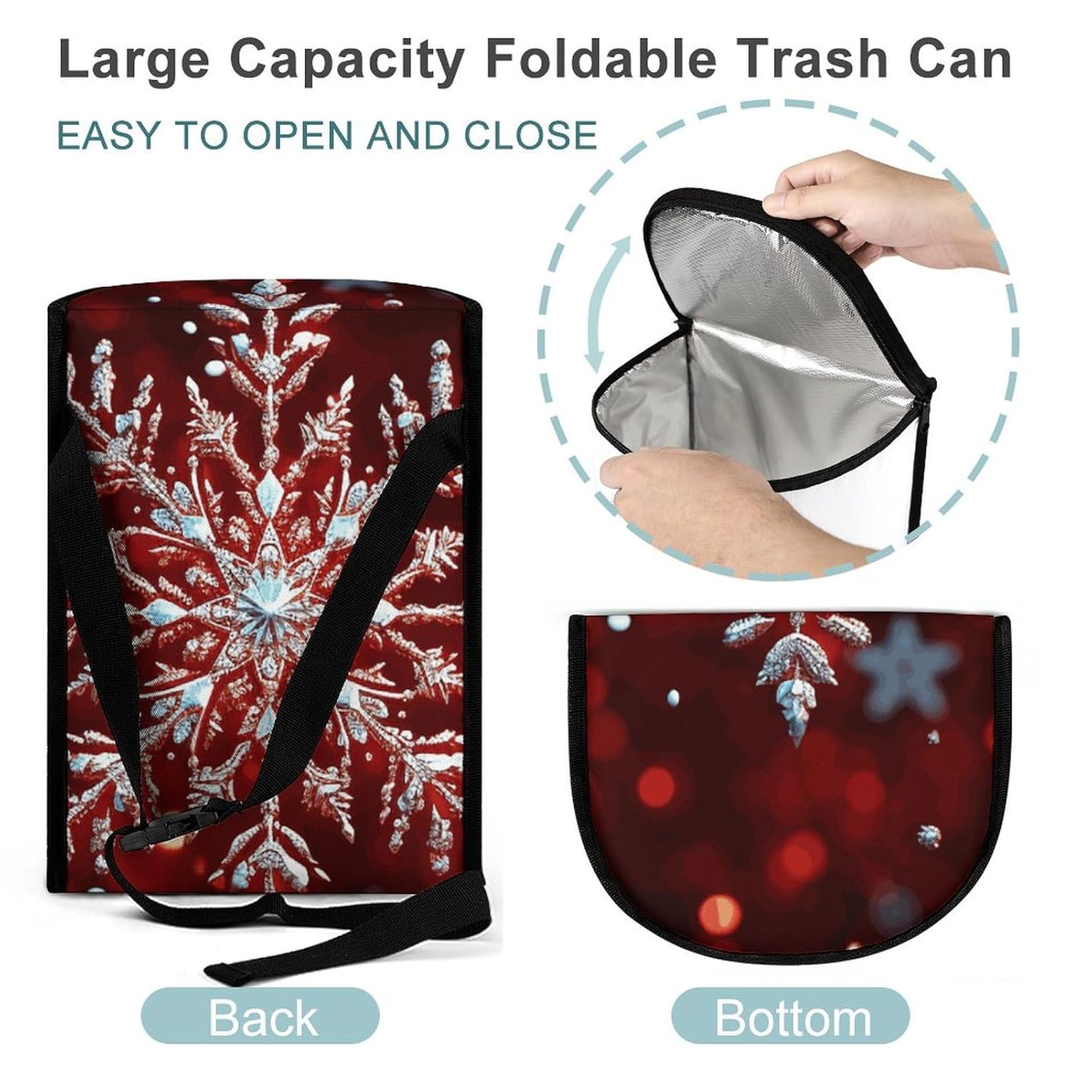 Hanging Car Trash Bag Christmas Snowflake Printed Car Garbage Storage Bag Leakproof Car Trash Can Portable Garbage Storage Bags