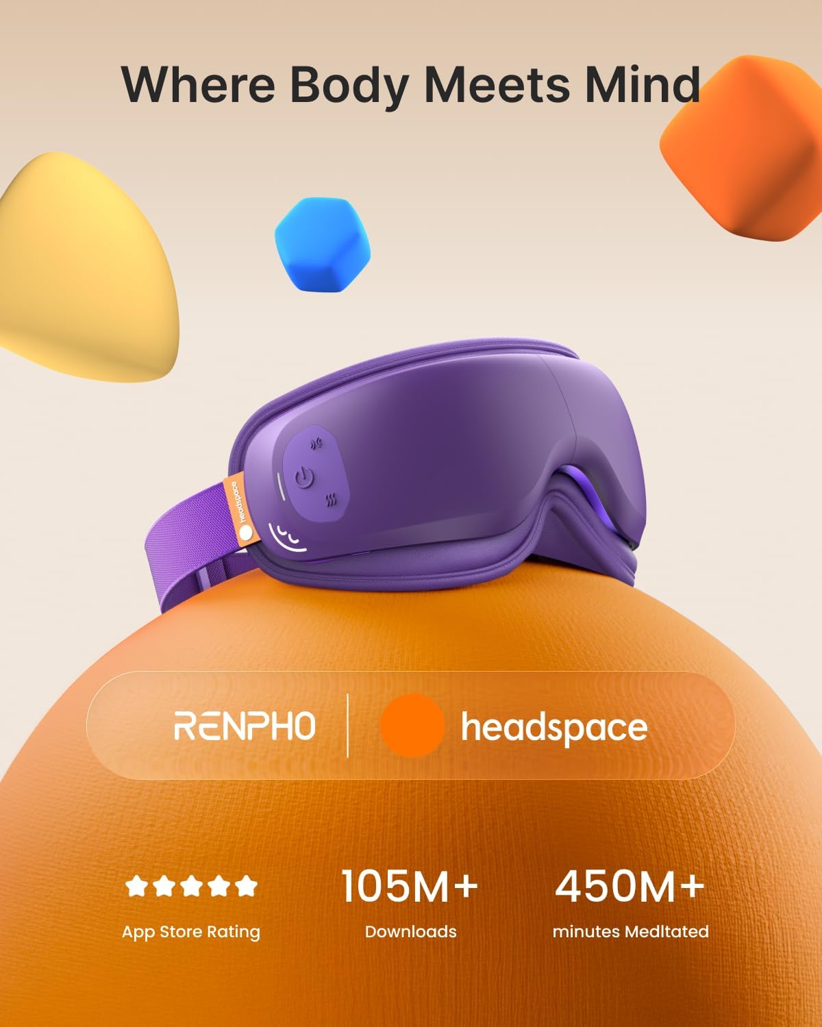 RENPHO & Headspace Eye Massager with Heat, FSA Eligible HSA Lightweight Eye Mask for Migraine Relief, Dry Eyes Relax, Reduce Strain
