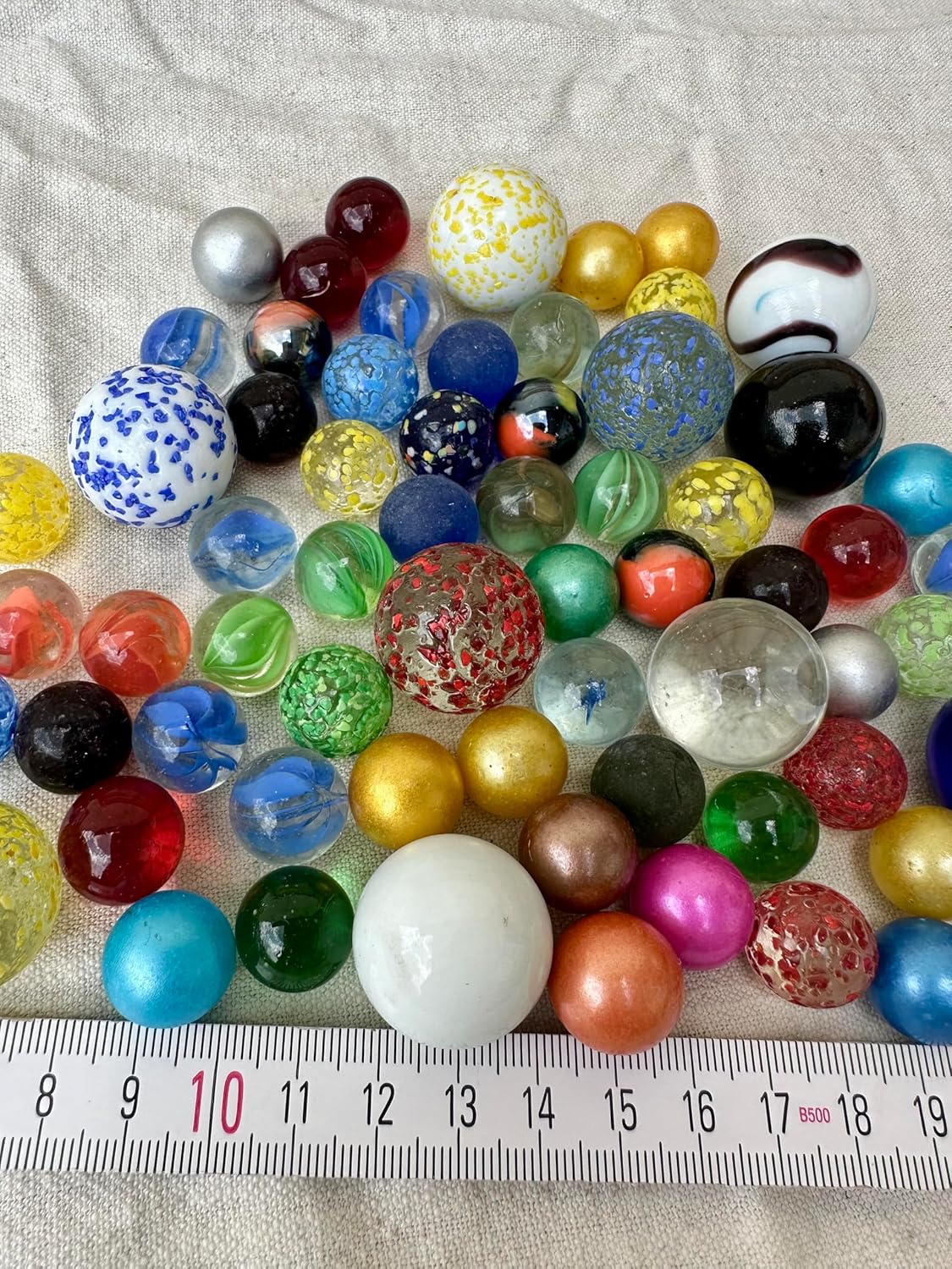 60-piece glass marble set in two sizes - for play, decoration and creativity! Immerse yourself in the colourful world of glass marbles! This exclusive set consists of 50 small marbles (16mm) and 10 larger marbles (25mm) - all carefully assembled in over 30 different designs. Whether classically colourful, dotted, transparent or matte: there is something for every taste. โจ MULTIPURPOSE - Ideal for marble games, marble runs, plant decoration, craft projects or simply collecting. The combination of the two sizes ensures variety when playing and decorating. Quality and variety - Each marble is made of durable glass with a smooth surface and bright colours. Perfect for creative minds - whether children, adults or collectors!