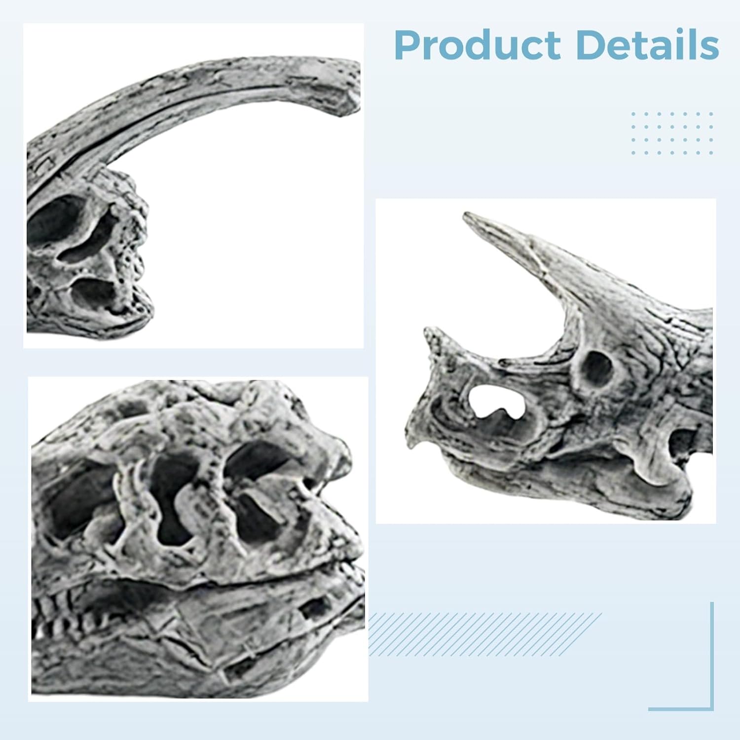 Color: Gray Material: PVC Size: Dinosaur Skull: Length 1.8 in / 4.5 cm,Width 1.2 in / 3 cm,Height 1 in / 2.5 cm Package Includes: 11 x Model Toys Note: - Please refer to the measurement. Tiny measuring error is allowable in normal range. - There might be a little color difference due to the monitor, camera or other factors, please refer to the physical item.