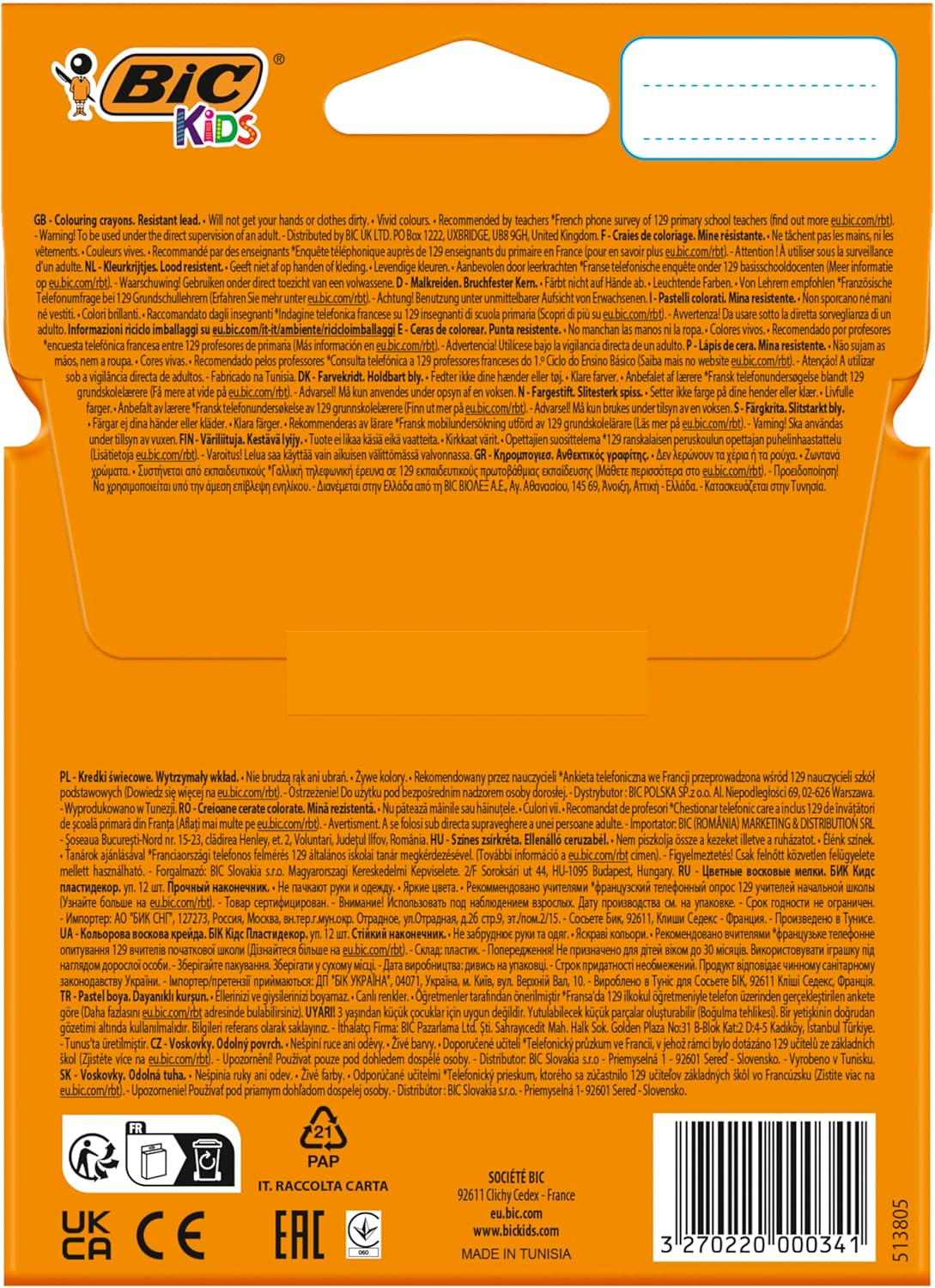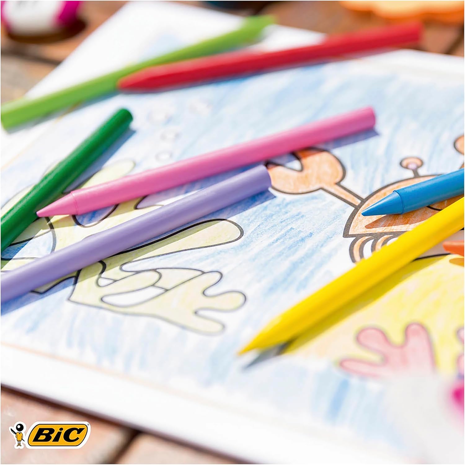 Bic Kids Plastidecor Hard Long-lasting Sharpenable Vivid Crayons (Assorted Colours) Pack of 12 Crayons.