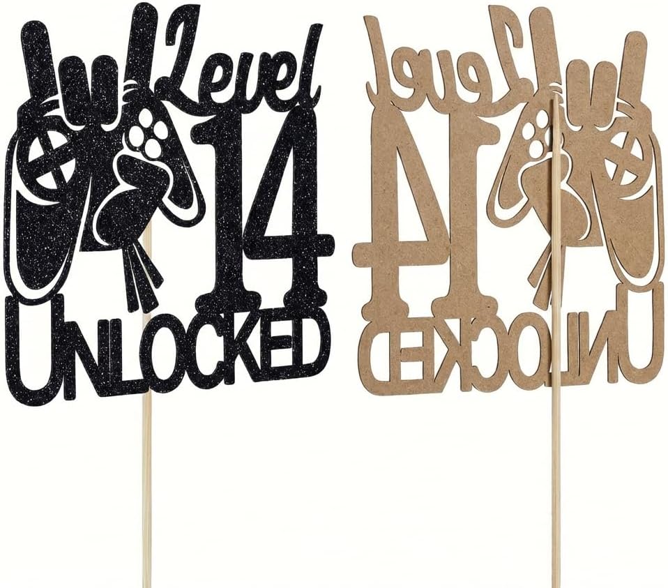 This 14th birthday cake topper is made of premium thickened cardboard that meets safety standards. The unique Unlocked Level 14 design incorporates gaming elements specifically created for teens. Glitter decorations shine under light, adding highlights to birthday cakes. Moderate size (14x13.2cm) fits most cake sizes. Easy to use - simply insert into cake, making it the perfect decorative choice for 14th birthday parties.