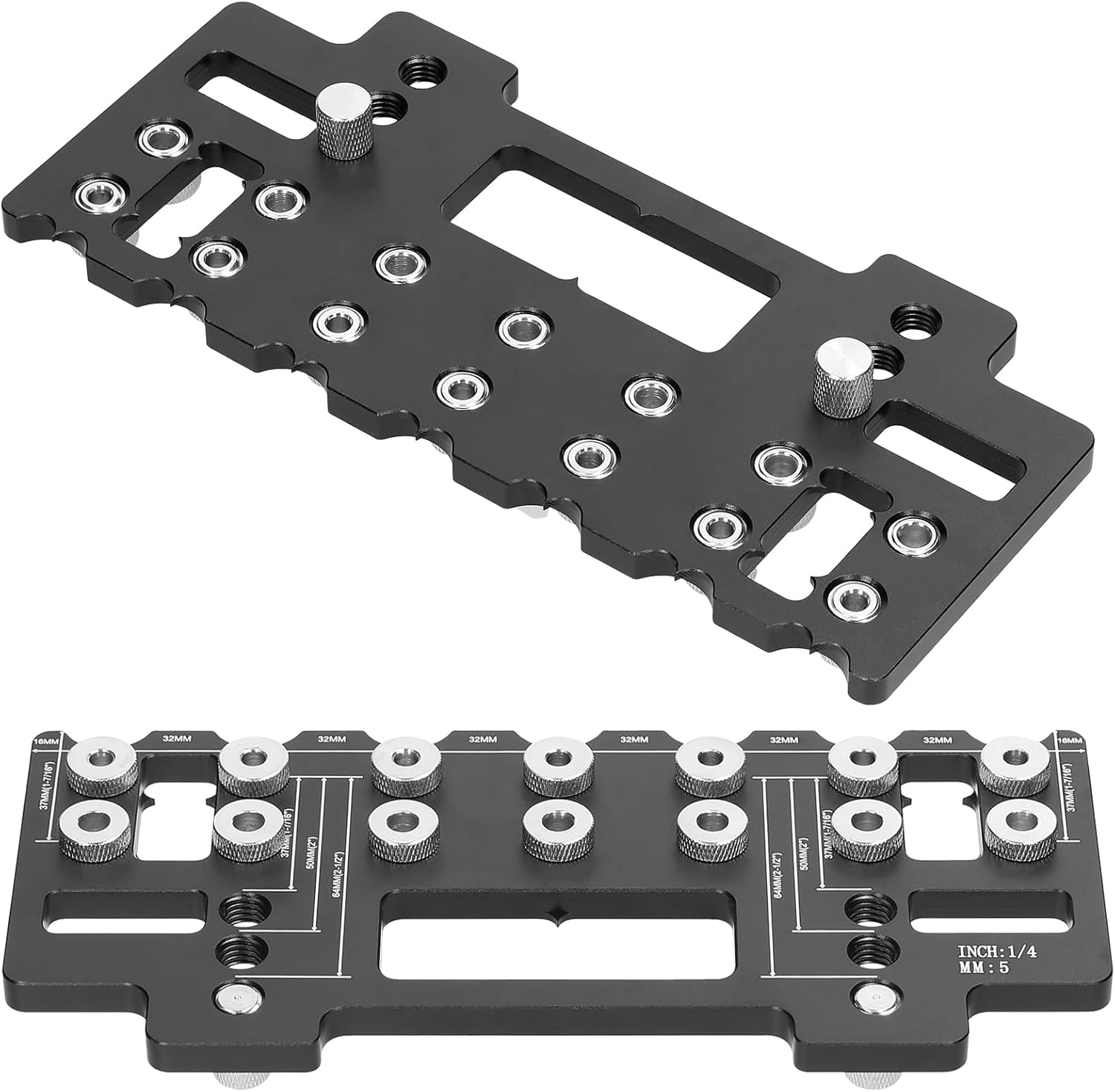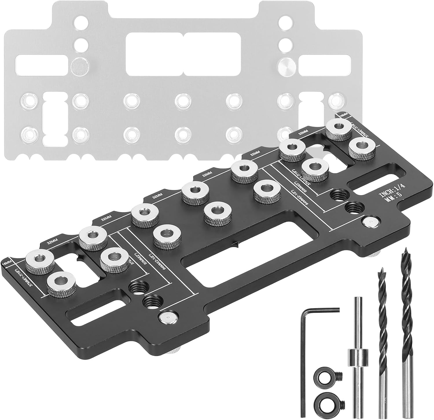 Specifications: Name: Holes Punch Locator Material: Aluminum Alloy Color: black, red (optional) Drill bit size: 5mm and 6.2mm Item size: 223 * 82mm / 8.78 * 3.23in Item weight: 520g / 1.15lb Package size: 250 * 100 * 30mm / 9.84 * 3.94 * 1.18in Package weight: 600g / 1.32lb Packing List: 1 * Holes Punch Locator Board 1 * Drill Bit Holder 1 * 5mm Drill Bit 1 * 6.2mm Drill Bit