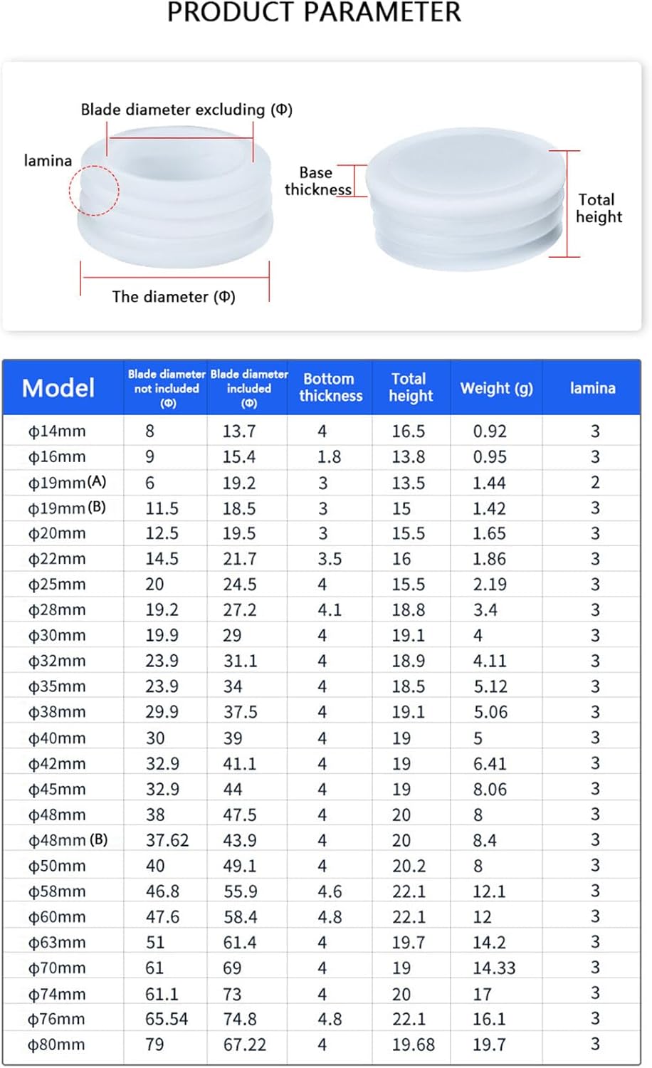 Product name: Plastic pipe plugs.Type: round.Colour: white.Material: plastic.Quantity: 20 pieces.Specification:16mm - 100mmUses:Plastic rectangular pipe plugs can be used to protect furniture feet and protect floors.